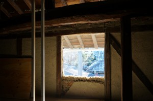 新設した開口部から見える風景。廊下歩いていくその先にある窓となります。