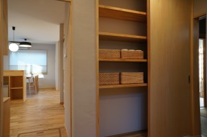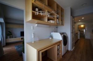 アイロンがけにも利用できます。 洗面所からの導線も一直線。