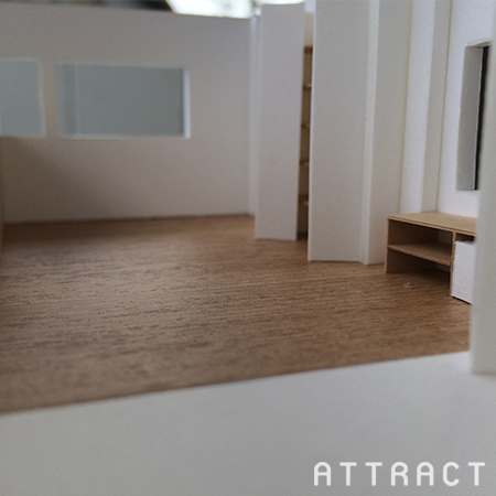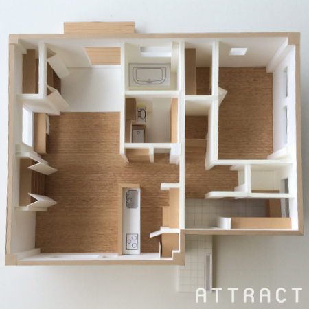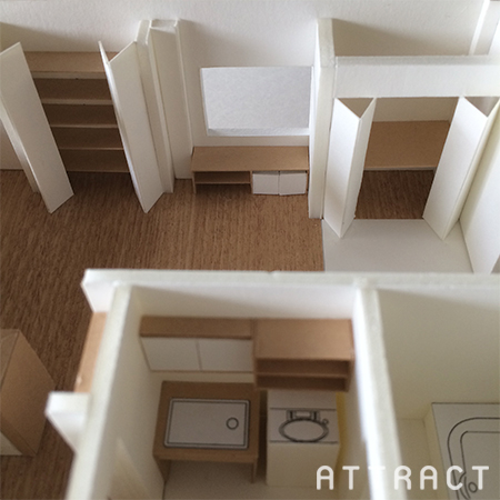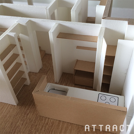 戸建リノベーション計画中の1階部分提案模型(1/50)です。